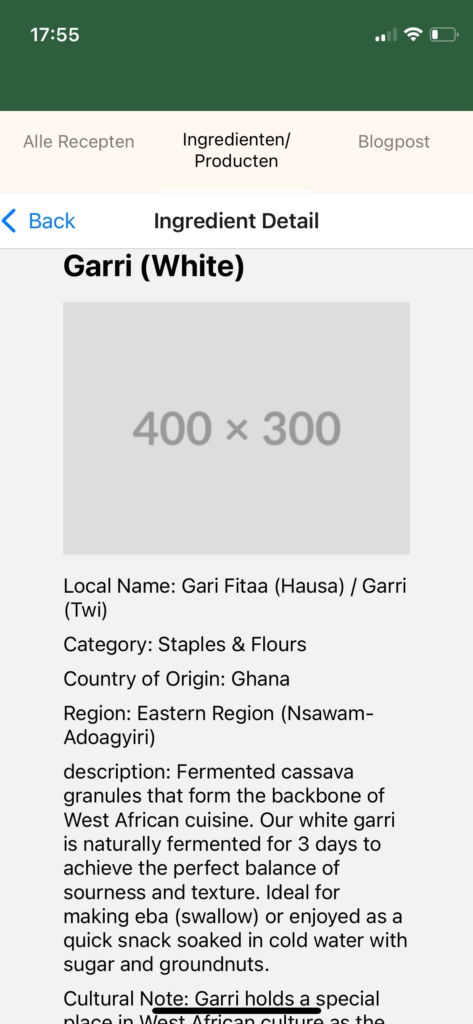 Hieronder de foto’s van hoe een model eruitziet, en de data die het verwerkt binnen het model. en hoe het gefetched wordt op de frontend en daaronder het resultaat in de app