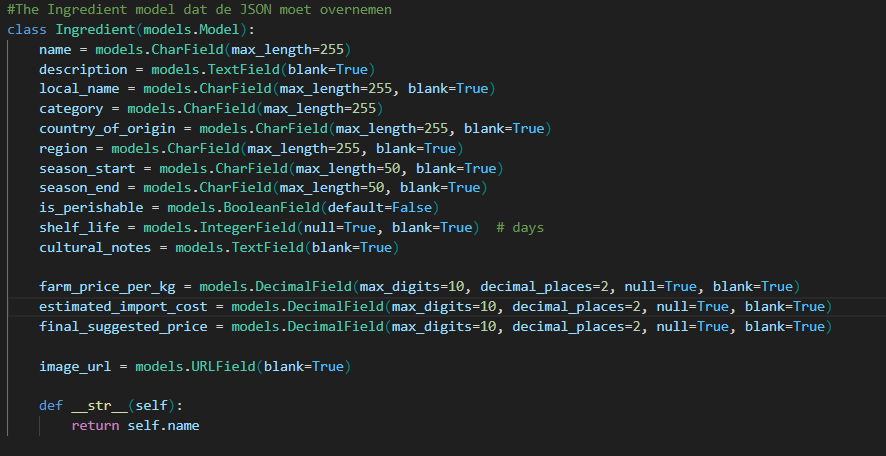Deze week ging ik verder met de endpoints van de API met de GET-methode om data op te halen van de recepten en ingrediƫnten. Voorheen was de methode om een json te maken, waardoor het op de front-end werd gefetched, en dit maal via de backend. Dit ging vele malen makkelijker vergeleken met de POST-methode die ik voor de authenticatie heb gebouwd, aangezien je hierbij niet met de tokens hoeft te werken, maar in plaats daarvan een vergelijkbaar SQL-script maakt, dat vervolgens in de database wordt gezet. Het doel hiervan is om de data van de json te vervangen en te ftchen op de frontend van de app. Het aanmaken van de models vond ik vrij makkelijk, maar ik had af en toe wat kleine misverstanden wanneer het ging om de juiste migraties te hebben voor de tables, en de database te vullen met de array. Uiteindelijk is het gelukt de migraties juist te krijgen, waardoor alle data werd weergeven in de app.