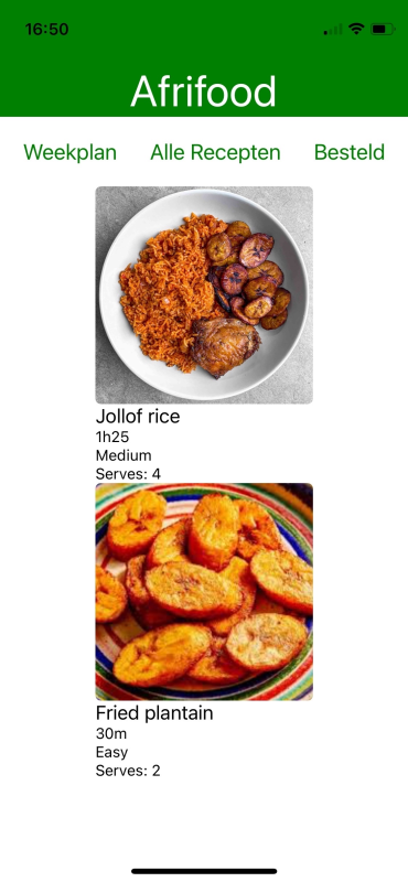 Ditmaal ben ik verder gegaan met de routing van het register/loginsysteem. Het is gelukt om met localstorage de gegevens op te slaan die ik via de commandprompt kan uitlezen. Verder heb ik de ingrediëntenlijst aangemaakt en heb ik verder gewerkt aan de navigatie om de knoppen werkend te maken. Momenteel gaat dat wel ietsjes stroef met de verbindingen. Ook ben ik verder gegaan met de ingrediëntenpagina, die ik samen met de receptenpagina heb kunnen linken aan de navigatie. Op dit moment is het gelukt om de data uit te lezen en op de pagina te zetten. Voor de zekerheid heb ik als eerste een melding van gemaakt of het de juiste elementen pakt, zoals als ik op het fried plantain-recept klik dat ik een melding krijg: je klikt nu op dit recept. Van daaruit werk ik naar een gedetailleerde receptenpagina voor dat specifieke recept.